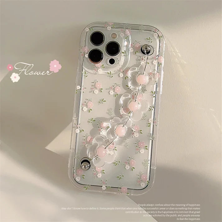 iphone Cute 3D Flower Wrist Phone Chain Soft Phone Case